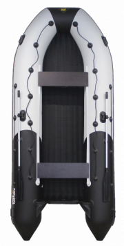 Трехместная надувная моторная лодка «Ривьера» 4000 НДНД. Моторная лодка с надувным дном низкого давления прекрасно подходит для любительской и спортивной рыбалки. Мотор крепится на стационарный транец.