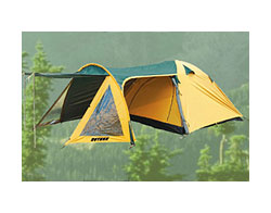 Однокомнатная палатка кемпингового типа для семейного отдыха, рассчитана на длительные стоянки со всеми удобствами. Предназначена для комфортного размещения 3-х человек. Имеет форму шатра с большим тамбуром и жилую комнату, что обеспечивает максимальный полезный объем.