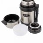 Универсальный термос выполняет функции термоса для еды (первого или второго) и термоса для напитков (кофе, чая). Это достигается благодаря специальной универсальной пробке, которая изготовлена из прочного пластика, легко разбирается для мытья и, обладая дополнительной теплоизоляцией, позволяет термосу дольше хранить тепло.