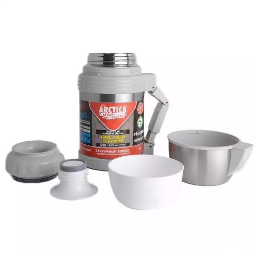 Термос металлический с широким горлом универсальный, серия 205N. Колба изготовлена из ударопрочной пищевой нержавеющей стали. Снаружи термос Арктика серии 205N покрыт специальным бесцветным лаком, который создает надежную защитную прослойку между кожей и сталью – прикоснувшись к термосу на сильном морозе Вы не рискуете примерзнуть к нему.