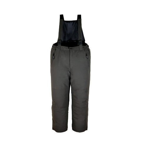 На полукомбинезоне два внешних кармана, утепленная съемная спинка, снегозащитная муфта, регулировка ширины низа брюк молнией.