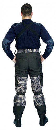 Верхний слой изготовлен из современной ткани «Дуплекс», обладающей отличными ветрозащитными свойствами, подкладка из мягкого гипоаллергенного флиса обеспечивает комфорт и тепло. Места повышенного износа имеют дополнительное усиление мембранной тканью «кошачий глаз», которая не пропускает влагу снаружи, отводит ее изнутри и обладает повышенной износостойкостью.