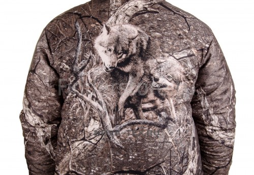 Костюм Вольф – практичный зимний костюм для охоты, рыбалки и отдыха. Спинка куртки с оригинальным принтом Волки. Костюм состоит из укороченной куртки и полукомбинезона прямого силуэта. Центральная застежка закрыта ветрозащитной планкой на кнопках, что служит дополнительной защитой от холодного ветра. На случай хорошей погоды предусмотрена возможность отстегнуть капюшон куртки.