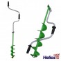 Ледобур Helios HS-130D - ледобур рыболовный складной шнековый с диаметром бурения 130мм. Верхняя рукоятка ледобура смещена относительно оси ледобура на 130 мм, а нижняя на 150 мм. Такое расположение рукояток позволяет вращать ледобур одновременно двумя руками, тем самым, увеличивая скорость бурения лунок во льду.