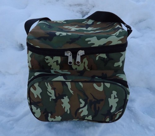 Ящик предназначен для хранения рыболовных снастей. Изготовлен из оцинкованного железа толщиной 0.5мм и помещен в сумку из плотной ткани.