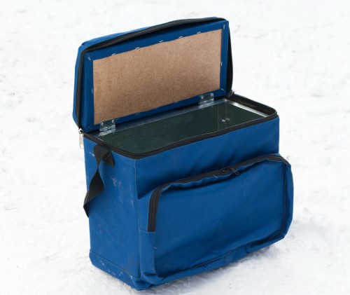 Предназначен для хранения рыболовных снастей. Изготовлен из оцинкованного железа толщиной 0,5 мм и помещен в сумку из плотной ткани.