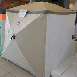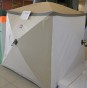 Палатка имеет форму куба и по высоте значительно комфортнее палаток шатрового типа, так как в отличии от них высота палатки одинакова во всех углах. Имеет два входа. Верхняя часть выполнена из дышащей ткани - брезента.