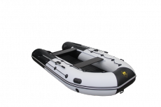 Трехместная надувная моторная лодка «Ривьера» 4000 НДНД. Моторная лодка с надувным дном низкого давления прекрасно подходит для любительской и спортивной рыбалки. Мотор крепится на стационарный транец.