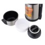 Универсальный термос выполняет функции термоса для еды (первого или второго) и термоса для напитков (кофе, чая). Это достигается благодаря специальной универсальной пробке, которая изготовлена из прочного пластика, легко разбирается для мытья и, обладая дополнительной теплоизоляцией, позволяет термосу дольше хранить тепло.