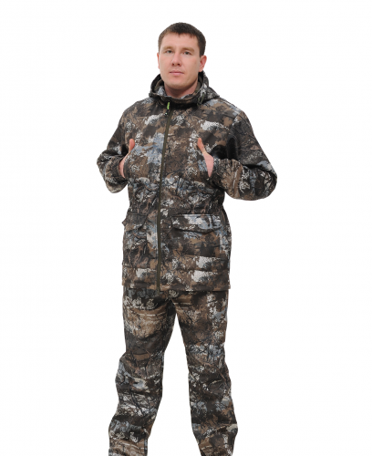 Демисезонный костюм «Свелл» (ТМ «Квест») от компании Novatex. Представляет собой классический «лесной» костюм, сконструированный на основе современных ветро-влагозащитных тканей.