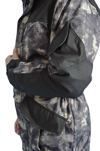 Верхний слой изготовлен из современной ткани «Дуплекс», обладающей отличными ветрозащитными свойствами, подкладка из мягкого гипоаллергенного флиса обеспечивает комфорт и тепло. Места повышенного износа имеют дополнительное усиление мембранной тканью «кошачий глаз», которая не пропускает влагу снаружи, отводит ее изнутри и обладает повышенной износостойкостью.