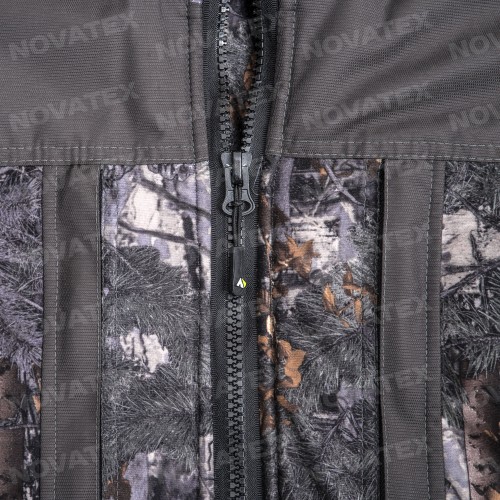 Костюм Лесной – удобная и практичная одежда ТМ Квест для зимнего отдыха, рыбалки и охоты. Удлиненная куртка прямого силуэта с воротником-стойкой, центральной застежкой на двухзамковую молнию.