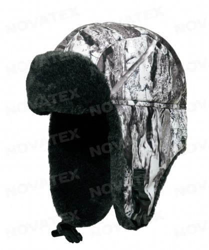 Материал верха - мембранная ткань "Алова", на подкладе флис и утеплитель "Термотекс". Застегивается на фастекс. На козырьке, внутренней части ушей и затылочной части утеплена искусственным мехом. Козырек отстегивается - зафиксирован на две кнопки. Объем шапки регулируется по обхвату головы. Уши шапки можно убрать назад и зафиксировать на две кнопки.