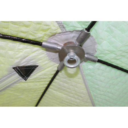 У палатки 2 входа, что особенно удобно при использовании несколькими рыбаками. Каждый вход имеет двухстороннюю молнию, прикрытую защитным клапаном на резинке. Такая система помогает уменьшить обмерзание молний и продувание палатки.